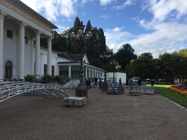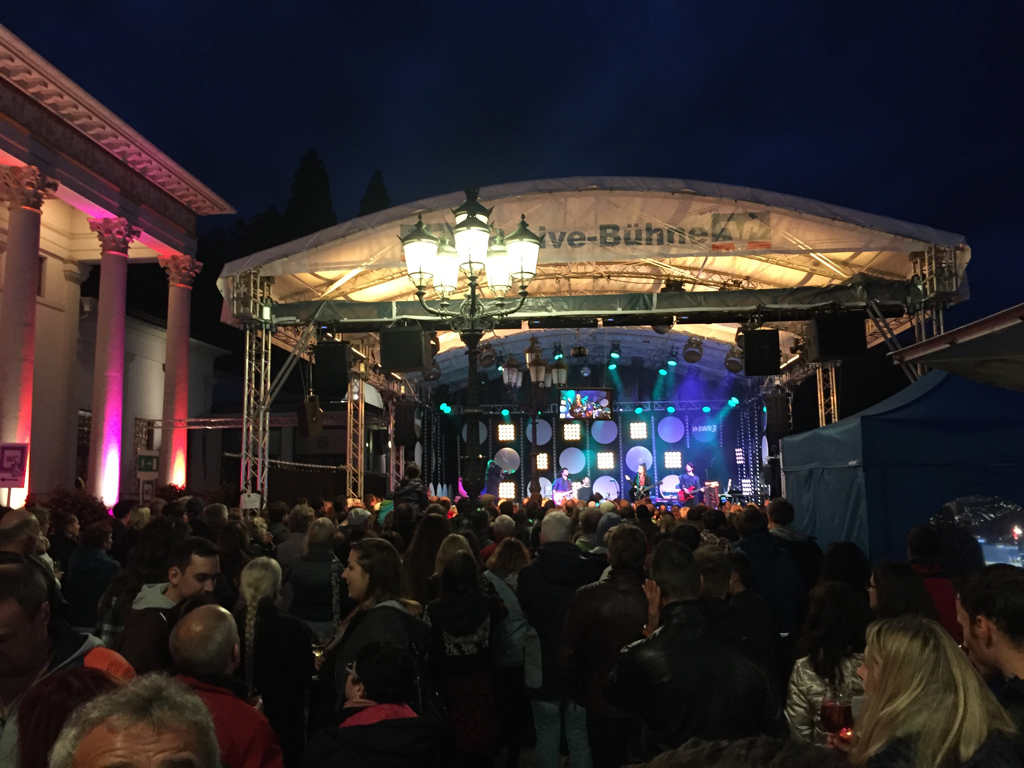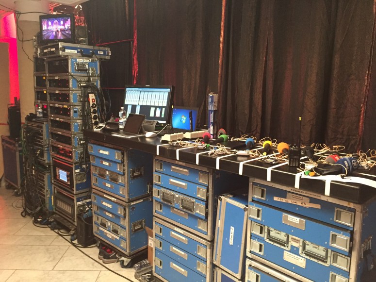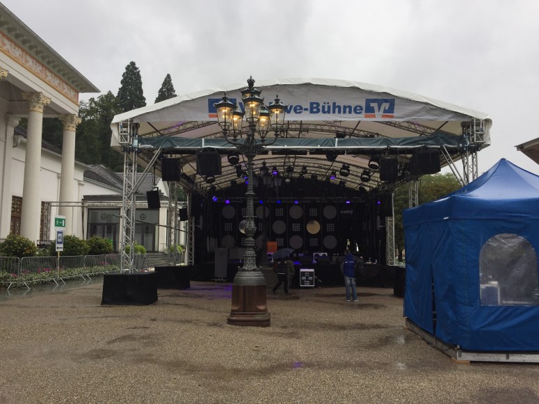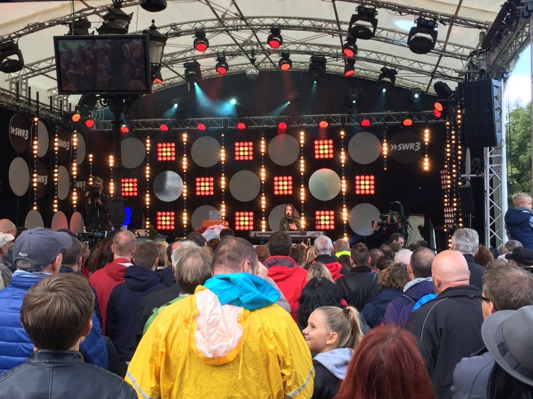 Die Technik besteht komplett aus dem Bestand des SWR Baden Baden und Stuttgart. Wir arbeiten mit T 10 Tops in kombination mit Y Subs. Als FOH desk kommt eine Digico SD 10, sowie eine Vi600 am Monitor zum Einsatz. Alle Signale werden Analog gesplittet und wir haben ca. 60 Inputs an jedem Pult. Mit 20 Minuten zwischen den Acts bleibt nicht besonders viel Zeit für ausgiebige Soundchecks.  Die Wetterprognosen für den heutigen Tag sind deutlich besser und wir freuen uns auf tolle Konzerte und Startalks.